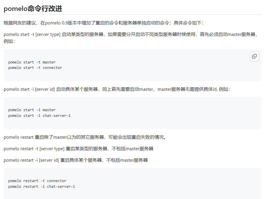在0.8版的pomelo中对配置文件servers.json进行了精简,通过增加clusterCount字段将原有的配置进行了简化,这样将更加适合大规模应用的部署和运维管理。