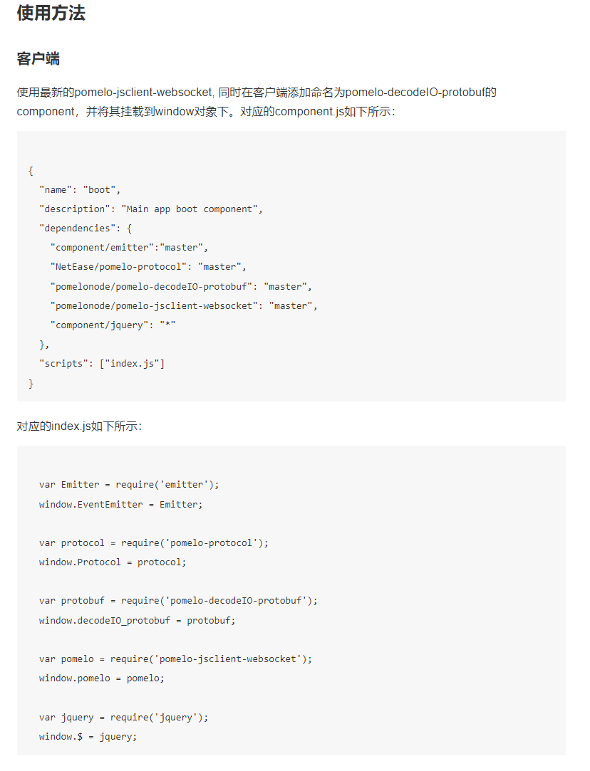 加载js使用(protobuf.js本来是可以直接加载proto不需要转的,这里之所以转成js使用是考虑和pomelo原有的格式保持一致)