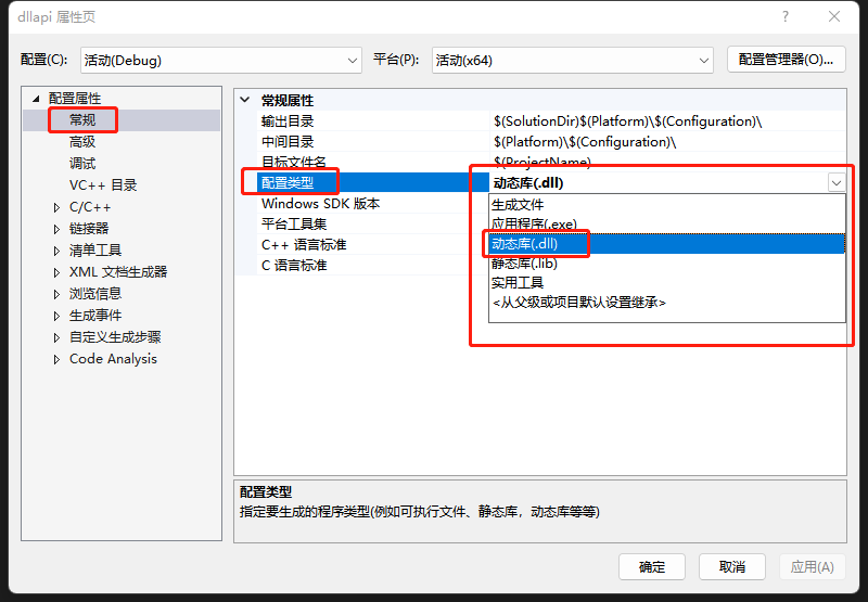 (2)修改项目属性输出类型改为dll。