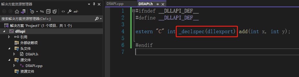 (3)正常添加.h与.cpp文件,.h中要导出的函数前添加_declspec(dllexport)声明即可。