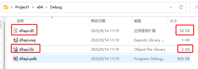 (3)重新生成,和第一种显示声明方式一样生成了.lib和.dll2个文件。