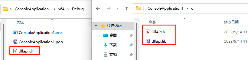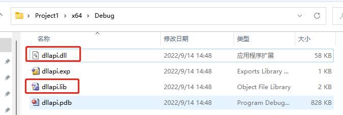 (4)重新生成,在工程目录即可生成对应的dllapi.lib与dllapi.dll文件。