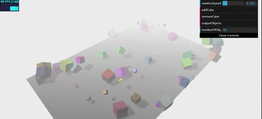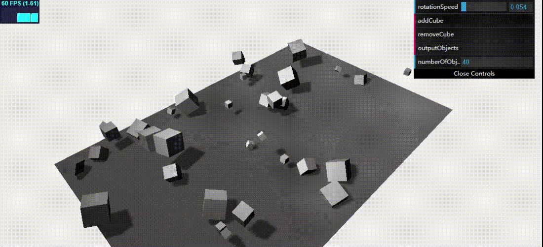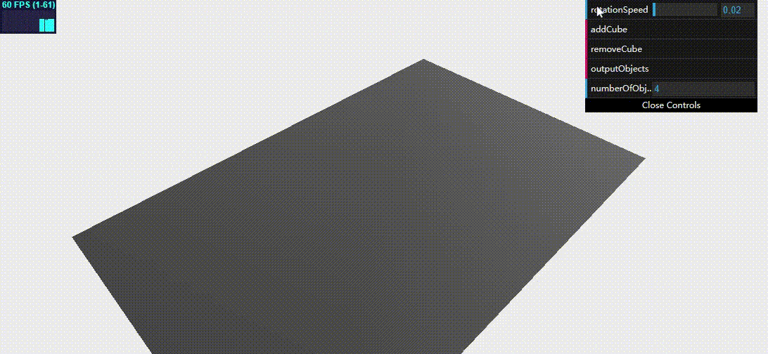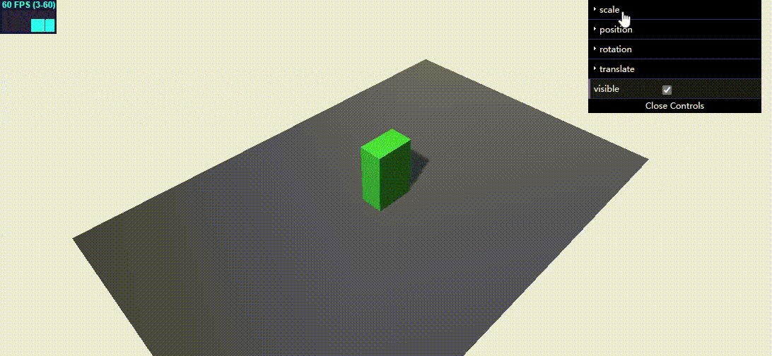 var mesh2 = THREE.SceneUtils.createMultiMaterialObject(clonedGeometry, materials); mesh2.children.forEach(function (e) { e.castShadow = true }); mesh2.translateX(5); mesh2.translateZ(5); mesh2.name = "clone"; scene.remove(scene.getChildByName("clone")); scene.add(mesh2); } }, 'clone'); function addControl(x, y, z) { var controls = new function () { this.x = x; this.y = y; this.z = z; };