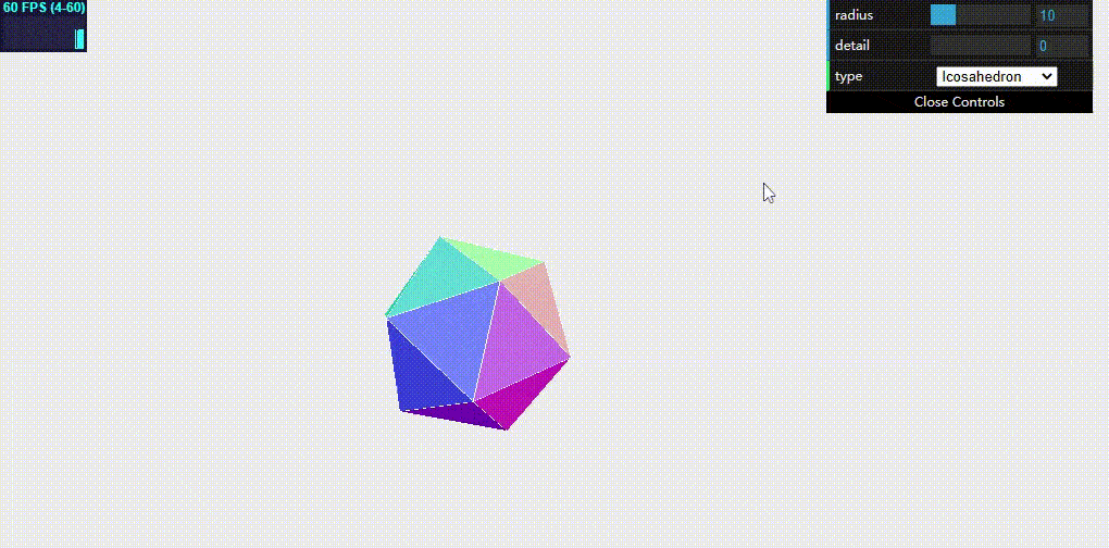 - THREE.lcosahedronGeometry 20面体