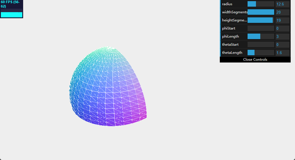 | phiStart | 指定从x轴的什么地方开始绘制球体 |