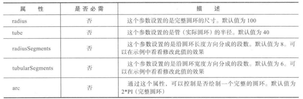 | thetaSegments | 指定圆环的对角线段数量,越大则圆环更平滑。默认为8 |