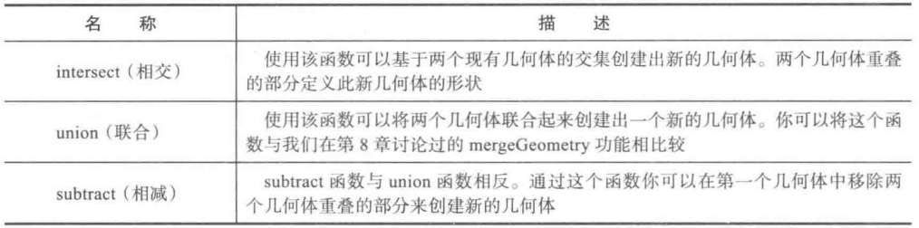 | <!-- chapter-06-08.html --> <!DOCTYPE html> <html> <head> <title>Binary operations</title> <script type="text/javascript" src="../libs/three.js"></script> <script type="text/javascript" src="../libs/stats.js"></script> <script type="text/javascript" src="../libs/dat.gui.js"></script> <script type="text/javascript" src="../libs/spin.js"></script> <script type="text/javascript" src="../libs/ThreeBSP.js"></script> <style> body { margin: 0; overflow: hidden; } </style> </head> <body>