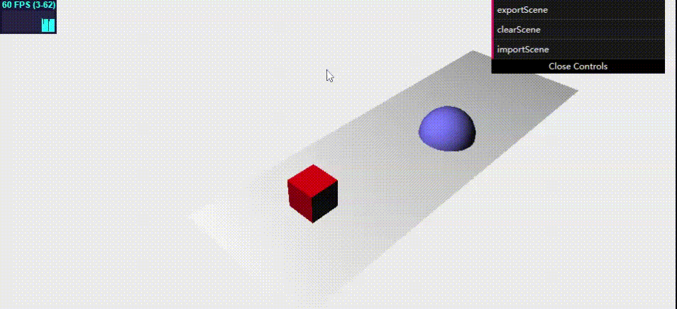 var gui = new dat.GUI(); var sphereFolder = gui.addFolder("sphere"); sphereFolder.add(controls, "spherePosX", -20, 20).onChange(function (e) { sphere.position.x = e; }); sphereFolder.add(controls, "spherePosZ", -20, 20).onChange(function (e) { sphere.position.z = e; }); sphereFolder.add(controls, "spherePosY", -20, 20).onChange(function (e) { sphere.position.y = e; }); sphereFolder.add(controls, "sphereScale", 0, 3).onChange(function (e) { sphere.scale.set(e, e, e); });