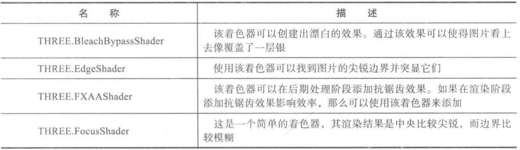 var renderPass = new THREE.RenderPass(scene, camera); var effectCopy = new THREE.ShaderPass(THREE.CopyShader); effectCopy.renderToScreen = true;