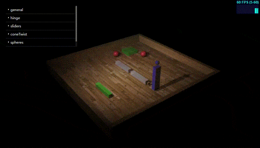scene.addConstraint(constraint); constraint.setLimit(0.5 * Math.PI, 0.5 * Math.PI, 0.5 * Math.PI); constraint.setMaxMotorImpulse(1); constraint.setMotorTarget(new THREE.Vector3(0, 0, 0));